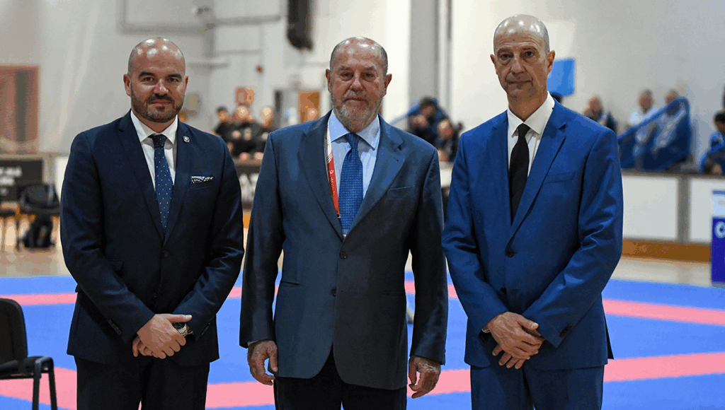 EKF and WKF President Antonio Espinós and EKF General Secretary Davor Cipek with the Minister of Sport of San Marino Rossano Fabbri.